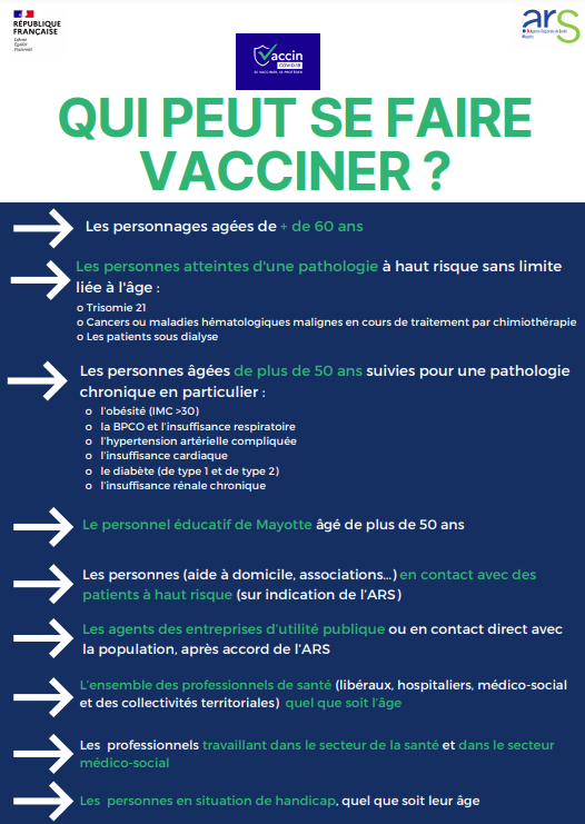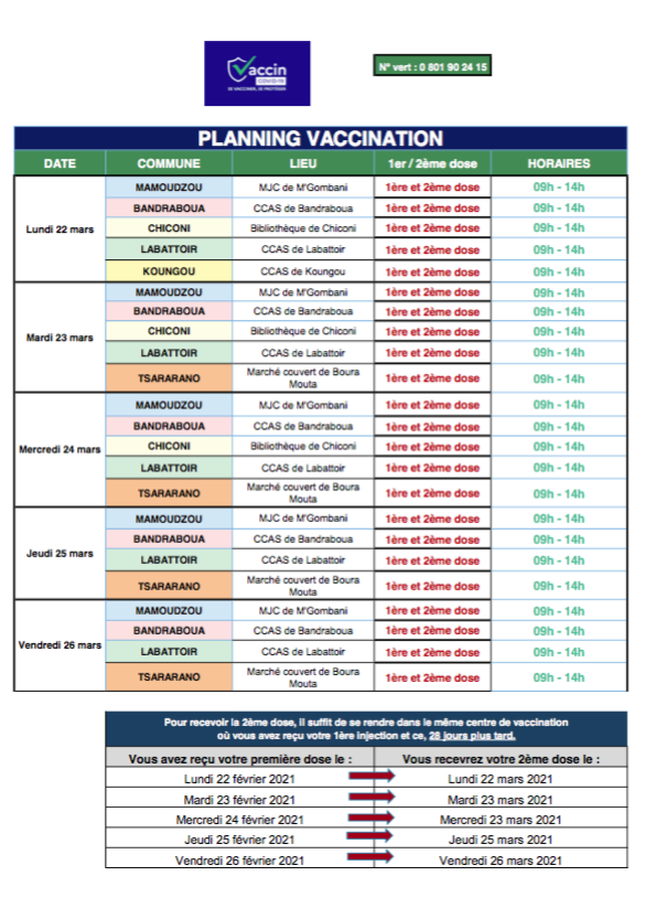 Ci-dessous le planning de vaccination pour la semaine prochaine et le rappel du public éligible à la vaccination.